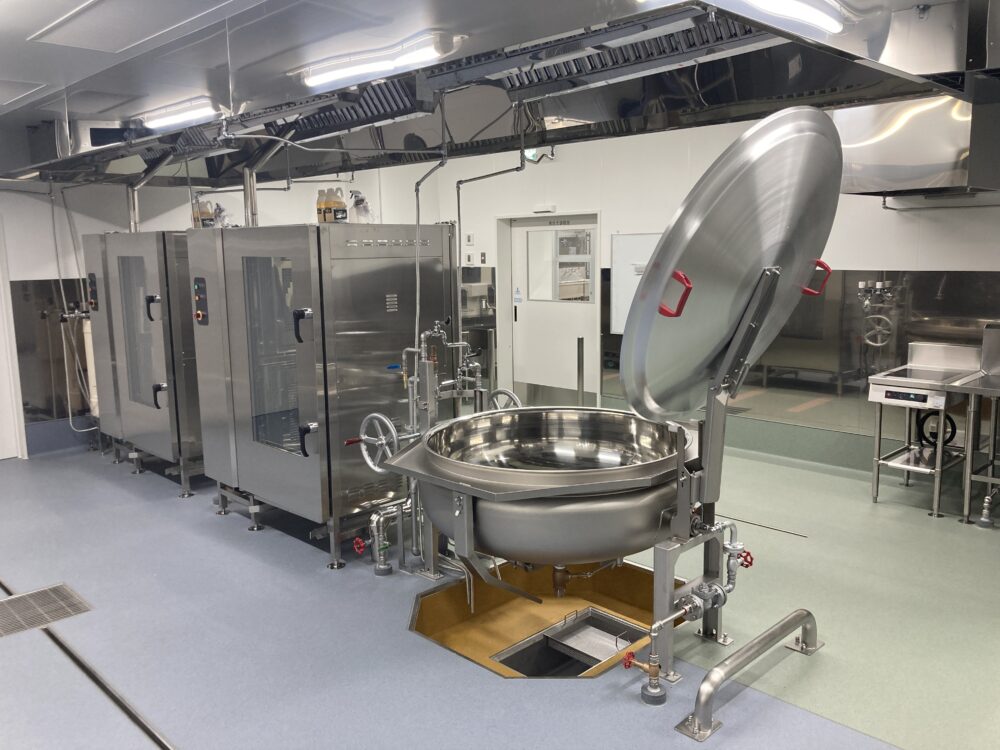 蒸気式回転釜12台により、汁物や煮物、炒め物等を調理します。